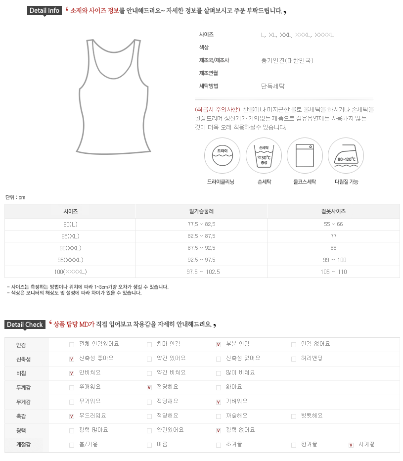 소재 : 풍기인견 85%, 폴리 15%